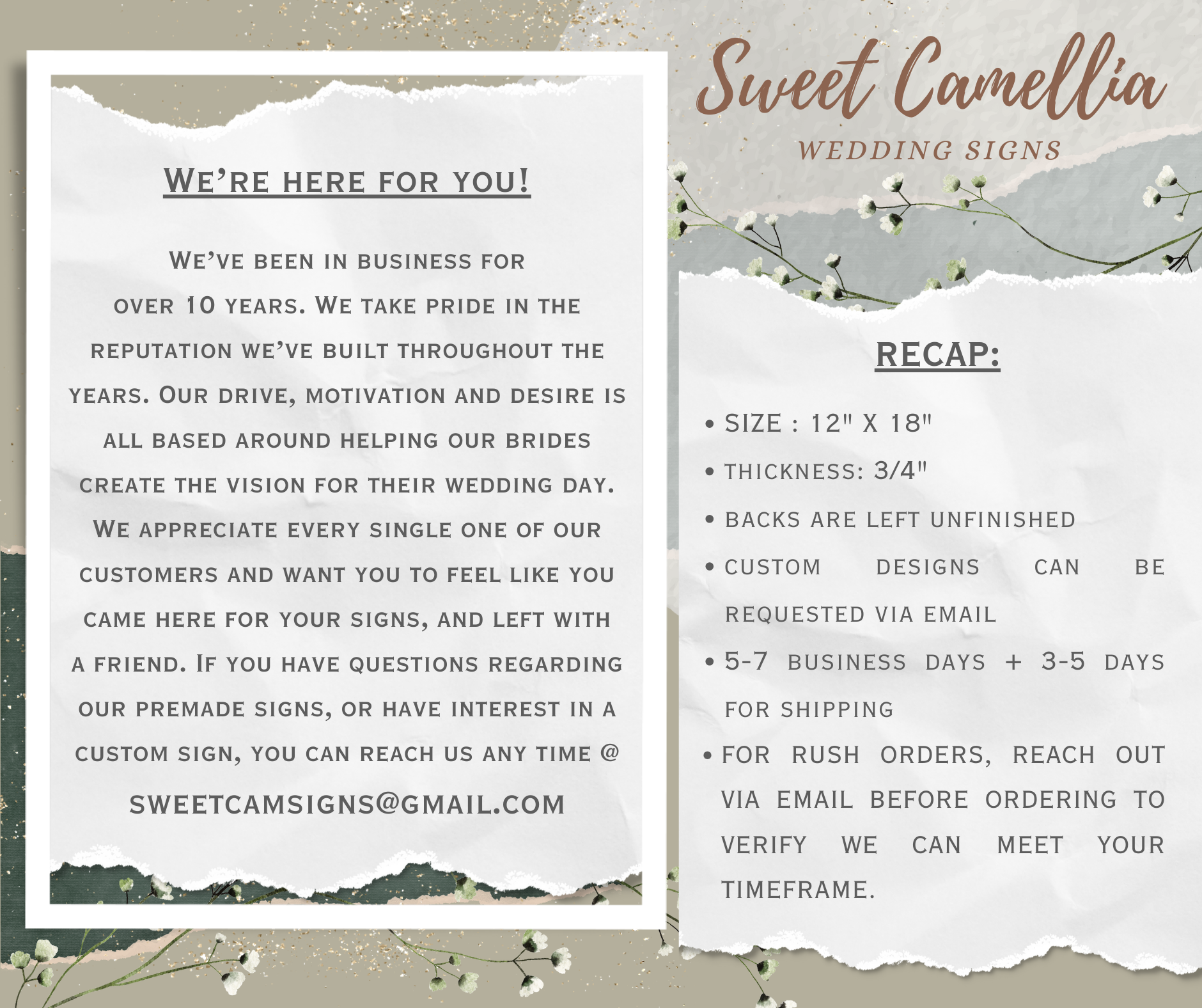 Honoring lost loved ones on your wedding day can bring a world of comfort to your heart. The reminder that those who were so important to you and your life ARE with you on the biggest day of your life and that they are watching from heaven. Honor your loved ones with a table displaying their photos around this beautiful sign.