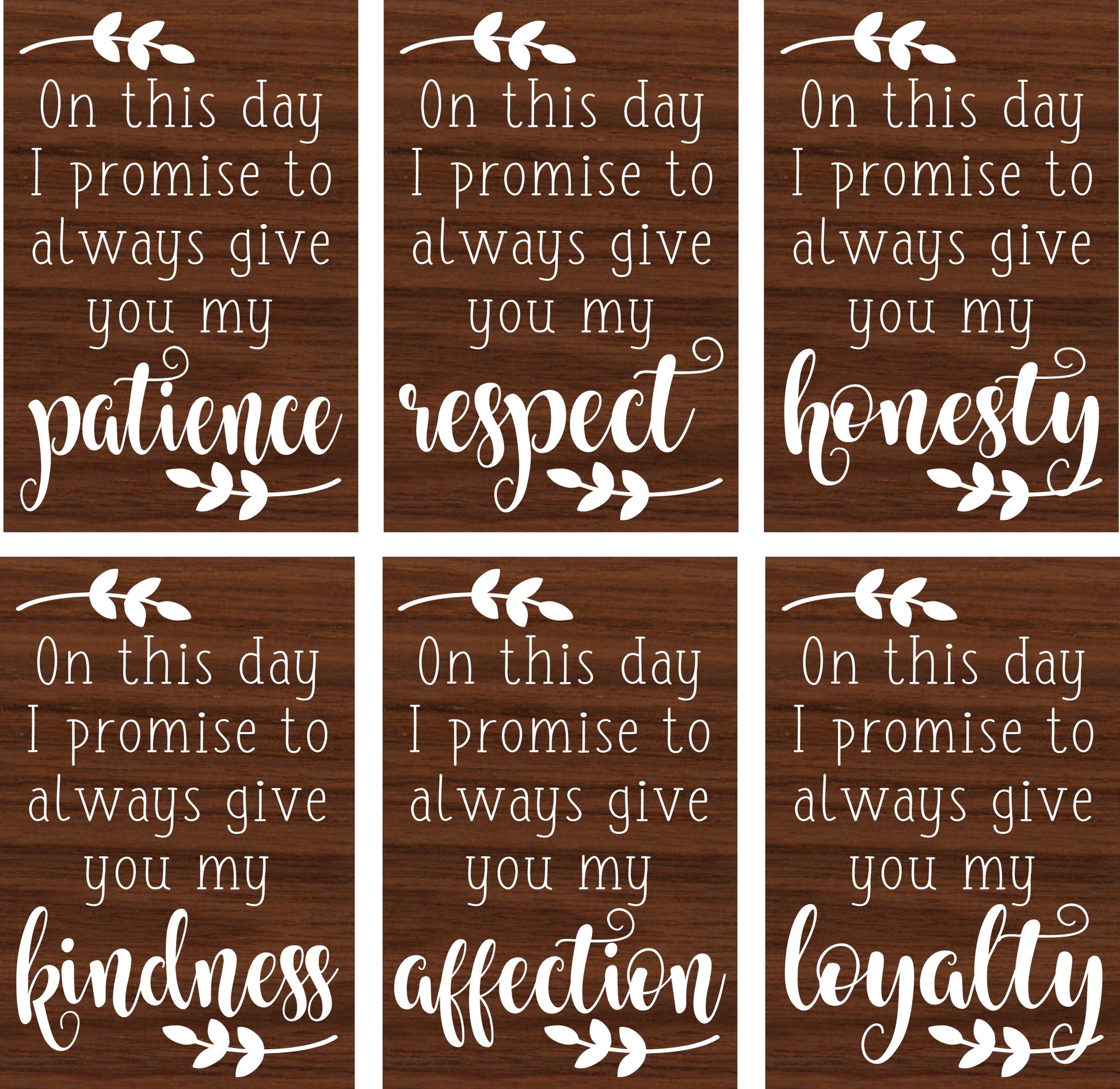 We've taken the concept of Aisle signs and created a set more focused on wedding vows for those who shy away from religious scriptures. This timeless, classic set would work great with any theme.